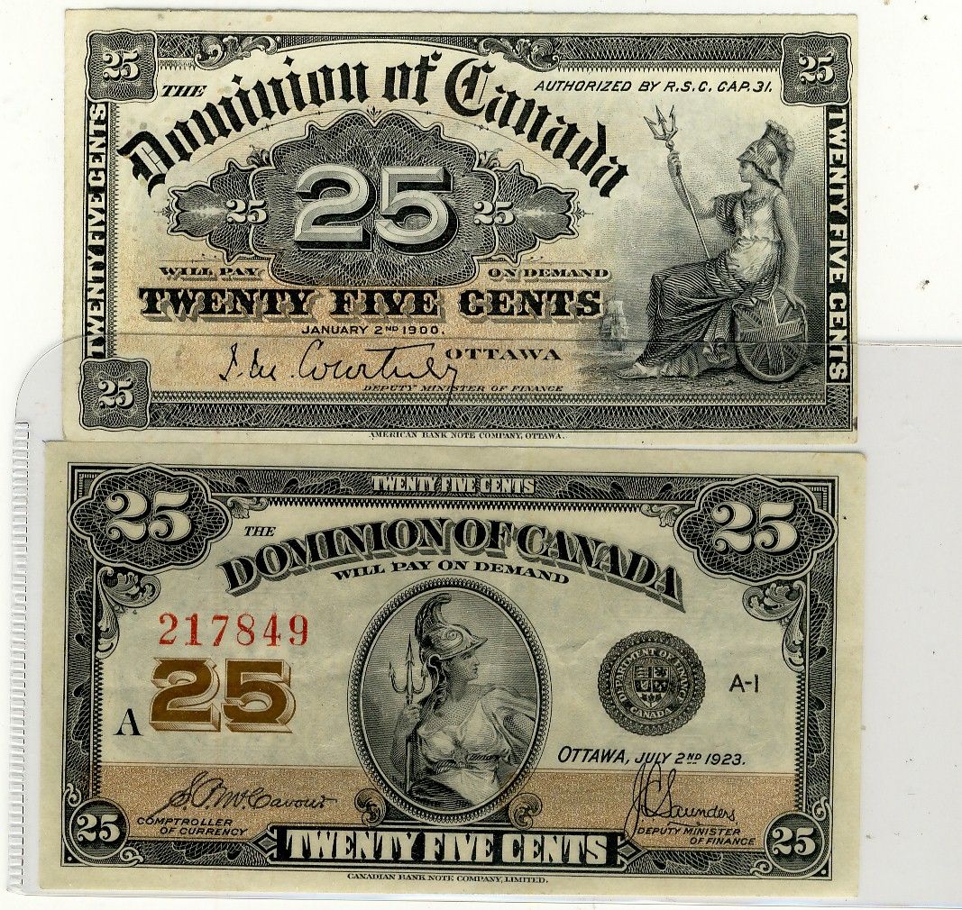 1900 25¢ DC-15a & 1923 DC-24c. Lot of 2 notes VF-EF.