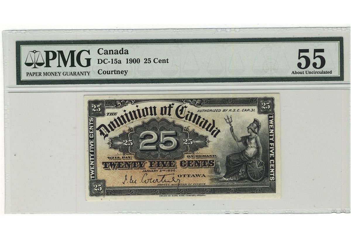 1900 25¢ DC-15a. PMG CH AU55. Bright and clean.