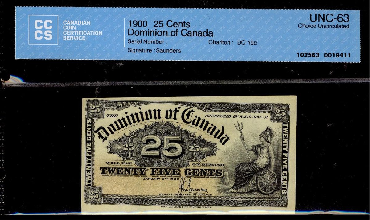 1900 25¢ DC-15c, CCCS UNC63