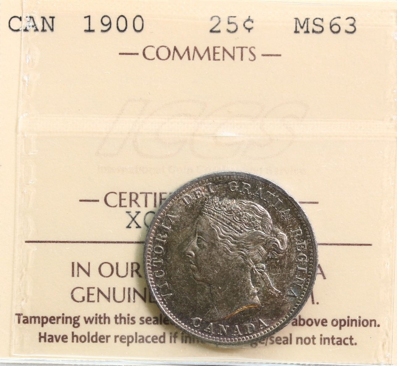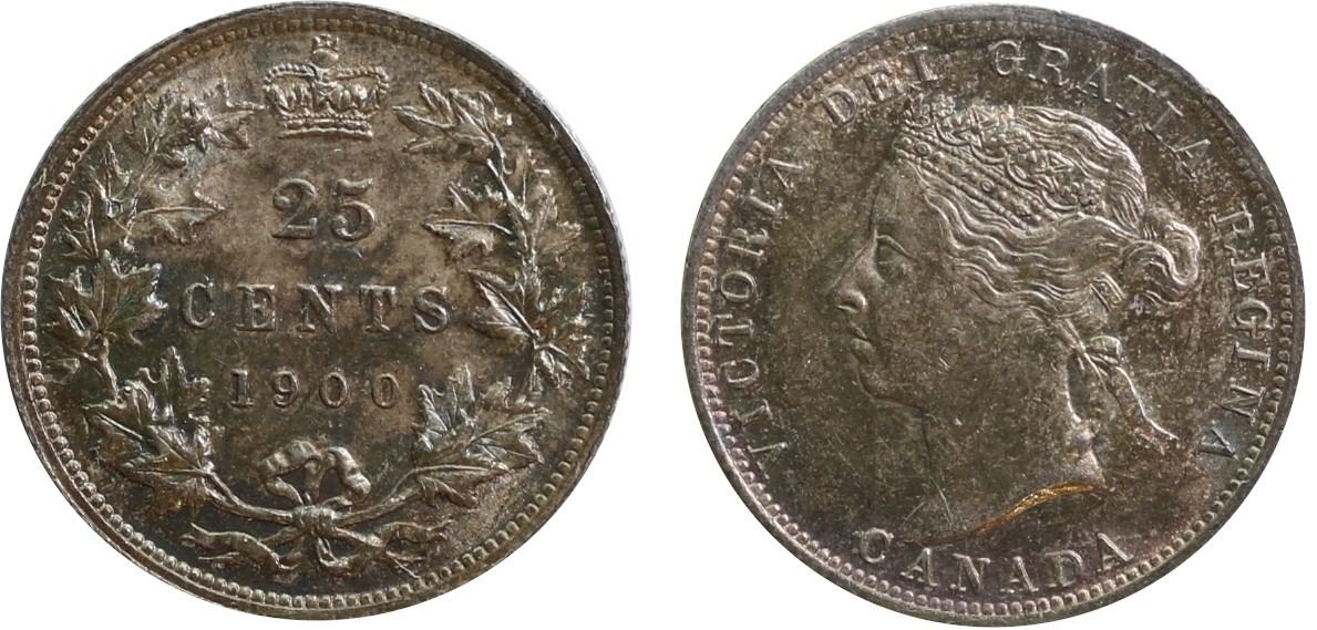 1900 25¢ ICCS Choice Mint State-63 Lustrous with attractive autumn shades on both sides.