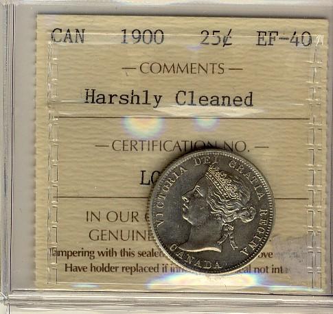 1900 25¢ ICCS EF40 Harshly Cleaned