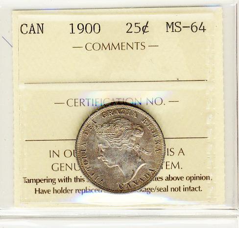 1900 25¢ ICCS MS64 Nicely toned