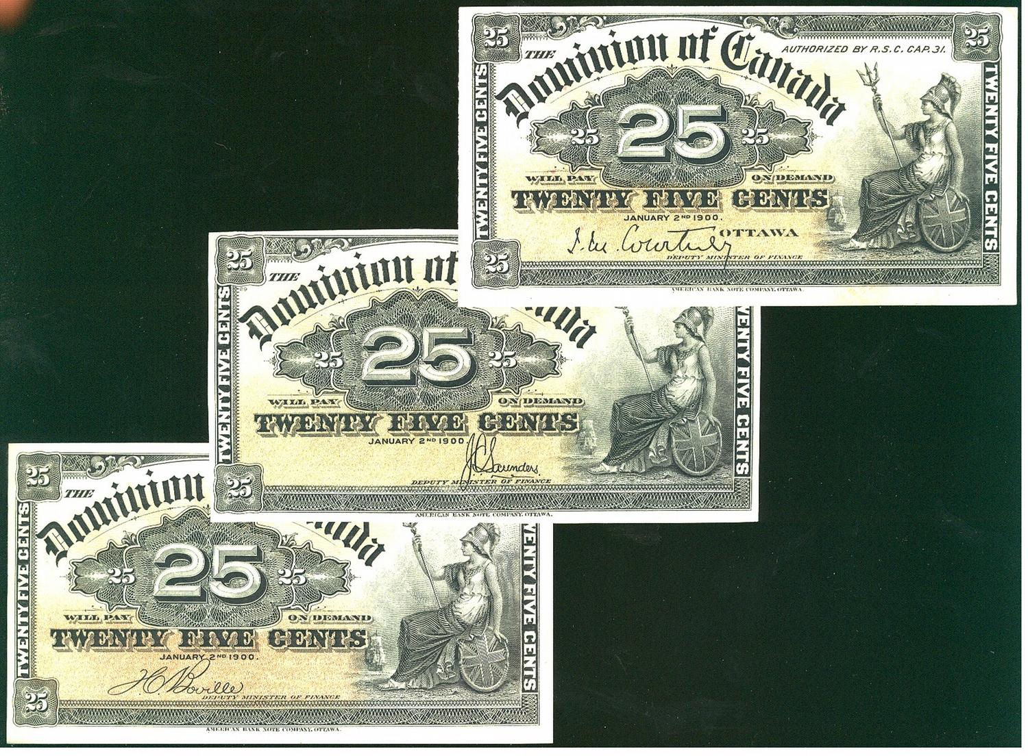 1900 25¢ Shinplaster DC-15a, DC-15b & DC-15c. Lot of 3 notes EF to Sharp AU. Should be viewed.