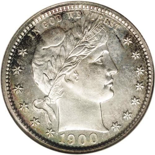 1900 25C PR62 NGC. Dappled cobalt-blue and olive-brown 1900[25C] PR62 NGC.
