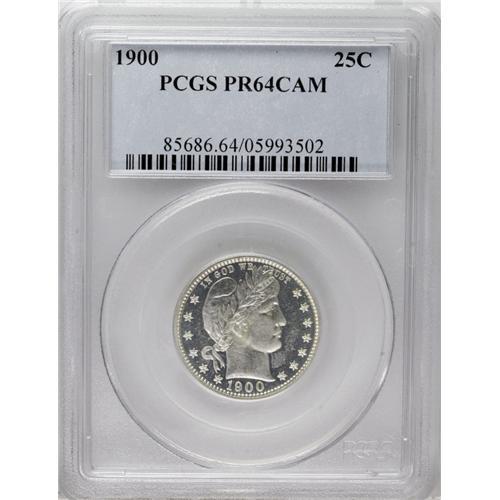 <B>1900 25C PR64 Cameo PCGS.</B></I> Both sides display moderate contrast, even through small areas of chalky haze over the obverse fields. Suitably reflective and otherwise untoned with a few lines on the neck. Population: 5 in 64 Cameo, 15 finer (11/06).<BR><BR><b>Shipping:</b> Coin/Currency (<a target="_blank" href="http://www.heritageauctions.com/common/shipping.php">view shipping information</a>)