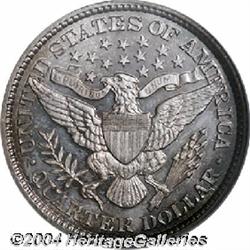 <B>1900<25C> PR67 NGC.</B></I> Bright electric-blue and crimson-red toning clings to the obverse of this well preserved proof, the reverse is a lighter reddish-gray color with sea-green border accents. The surfaces are free of all but the smallest hairlines, and the watery fields have excellent depth. A flashy Superb Gem that would be a highlight of any collection. <BR><BR><B>Important notice:</B> Heritage usually auctions material at the rate of 200-250 lots per hour. On some occasions eBay Live bid software or the Internet may not be able to keep up with the pace of the auction. We recommend placing a realistic absentee bid now as insurance to avoid disappointment. Occasionally the auctioneer may eliminate or reject an eBay Live bid, and the auctioneer may also reopen a lot after the close of the eBay live bidding (usually because we missed an audience bid), and may reject your bid even if it shows you as the winning bidder. By bidding via eBay Live, you agree that Heritage may award the lot to another bidder at its sole discretion under the circumstances described above or any other reasonable circumstances. Since eBay bids are not shown to us until we open the lot on the floor, we treat those bids just like floor bids. In most cases the floor responds before the eBay bid is presented to us, due to Internet lag time, so for consistency we have made it a policy that floor bids are always considered first over tie eBay live bids. Also please note that all Heritage lots purchased through eBay Live carry a 20% Buyer's Premium. Please make sure you read the Terms and Conditions before you bid.