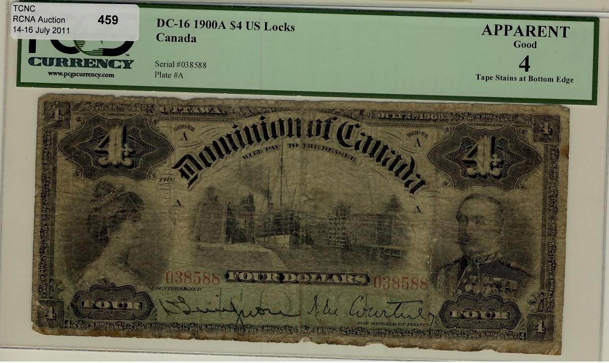 1900 $4 DC-16 038588 PCGS G4 App