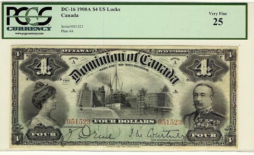1900 $4 DC-16 #051523 PCGS VF25. A nice and quite clean example.