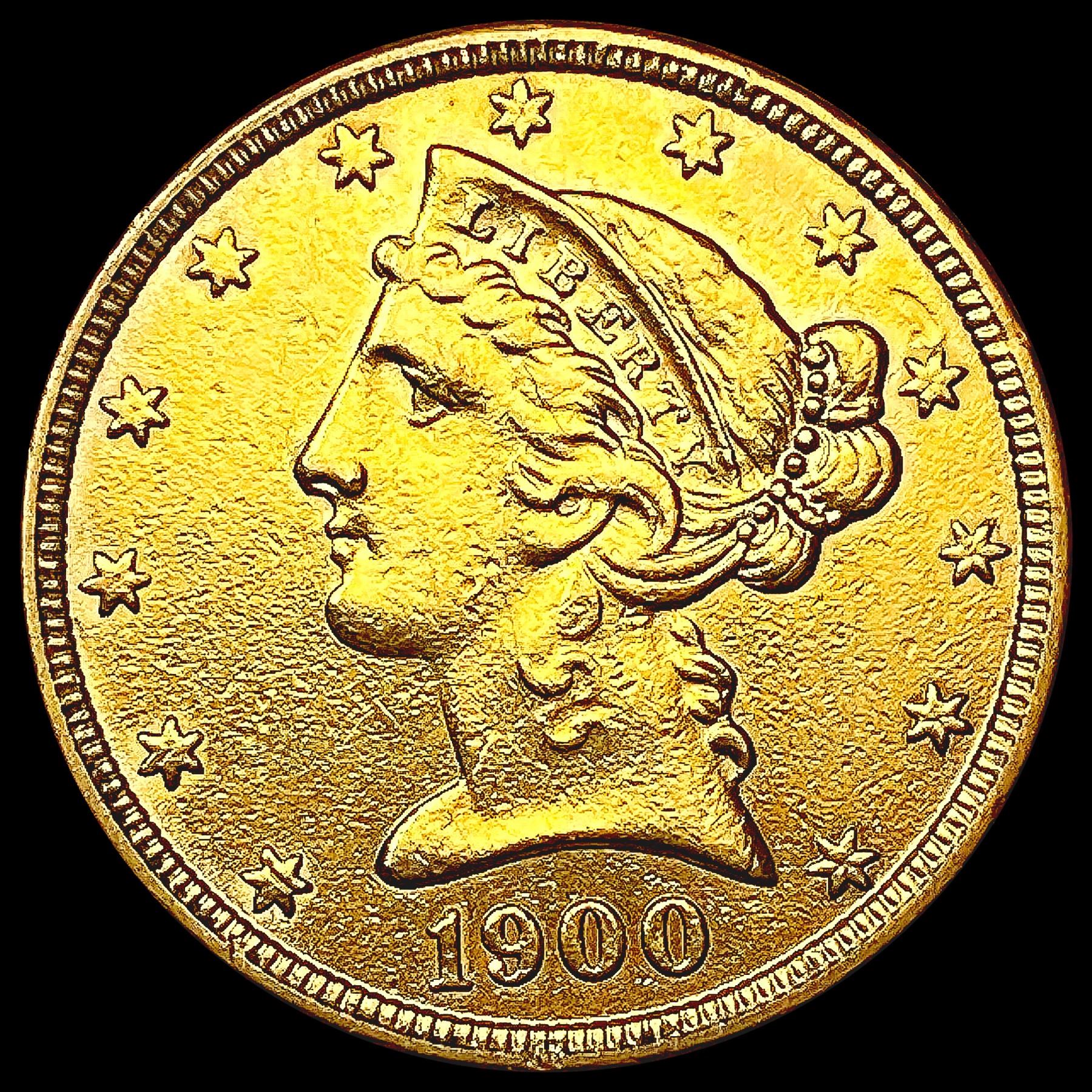 1900 $5 Gold Half Eagle CLOSELY UNCIRCULATED