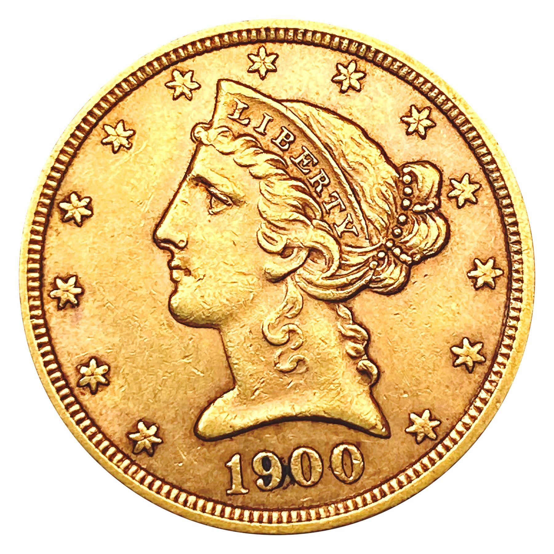 1900 $5 Gold Half Eagle CLOSELY UNCIRCULATED