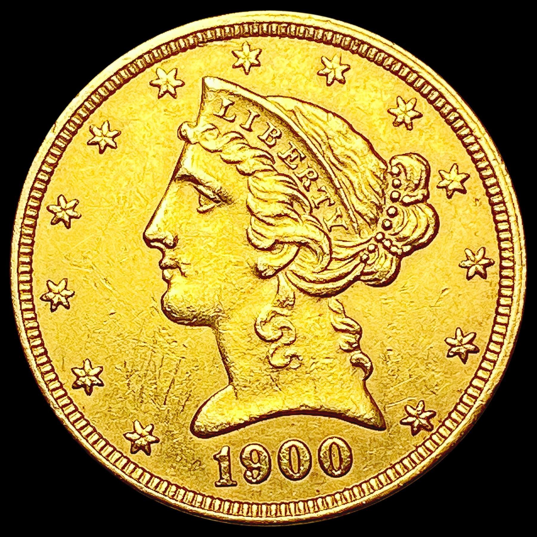 1900 $5 Gold Half Eagle CLOSELY UNCIRCULATED