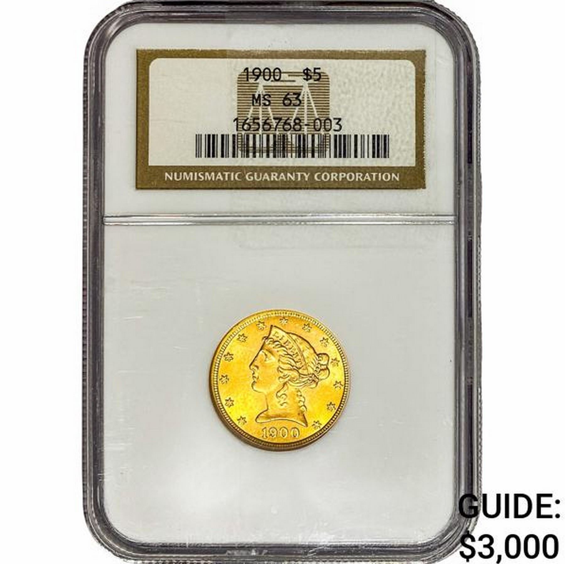 1900 $5 Gold Half Eagle NGC MS63
