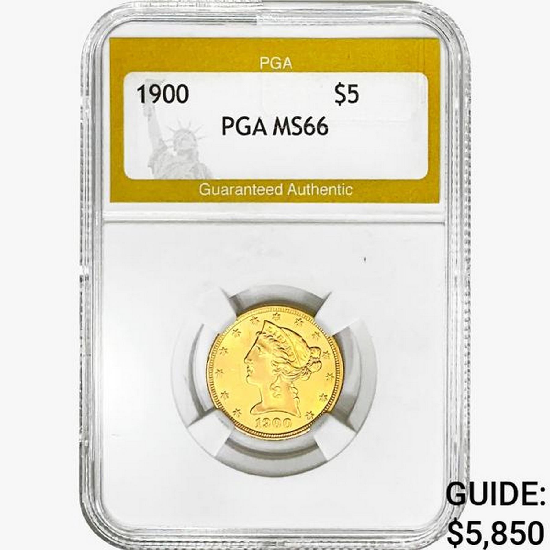 1900 $5 Gold Half Eagle PGA MS66