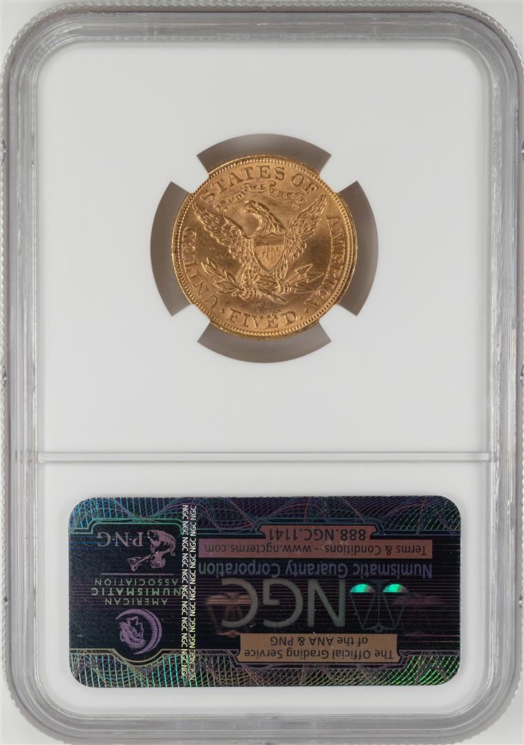 One 1900 $5 Liberty Head Half Eagle Gold Coin NGC MS62. NGC Certified.