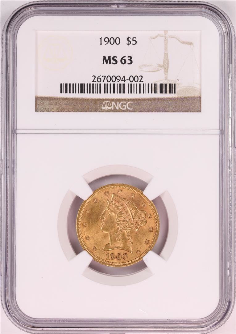 One 1900 $5 Liberty Head Half Eagle Gold Coin NGC MS63.