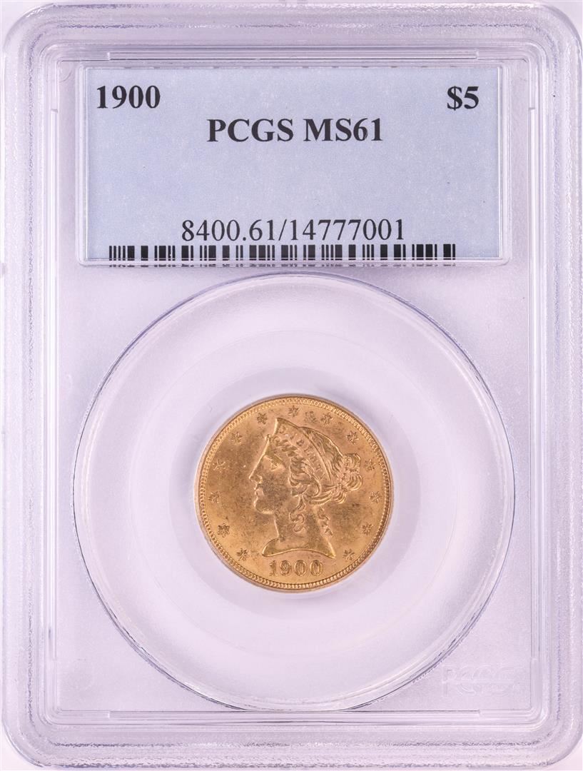 One 1900 $5 Liberty Head Half Eagle Gold Coin PCGS MS61. PCGS Graded.