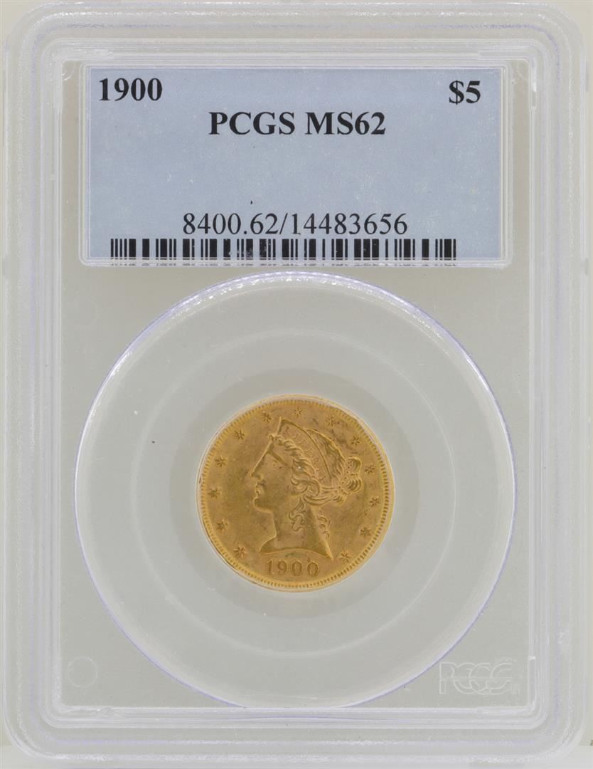 One 1900 $5 Liberty Head Half Eagle Gold Coin PCGS MS62. PCGS Graded.