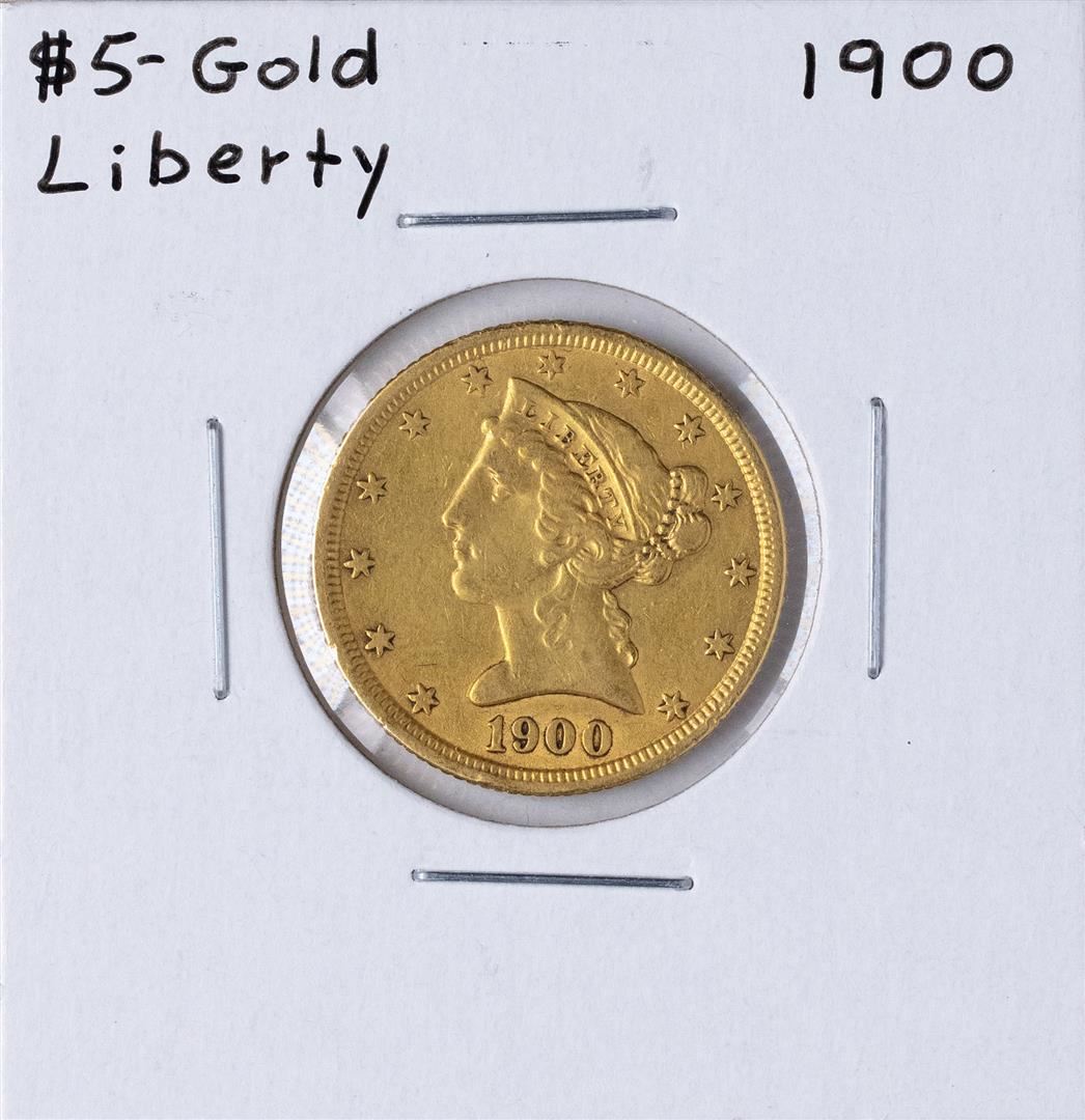 One 1900 $5 Liberty Head Half Eagle Gold Coin.