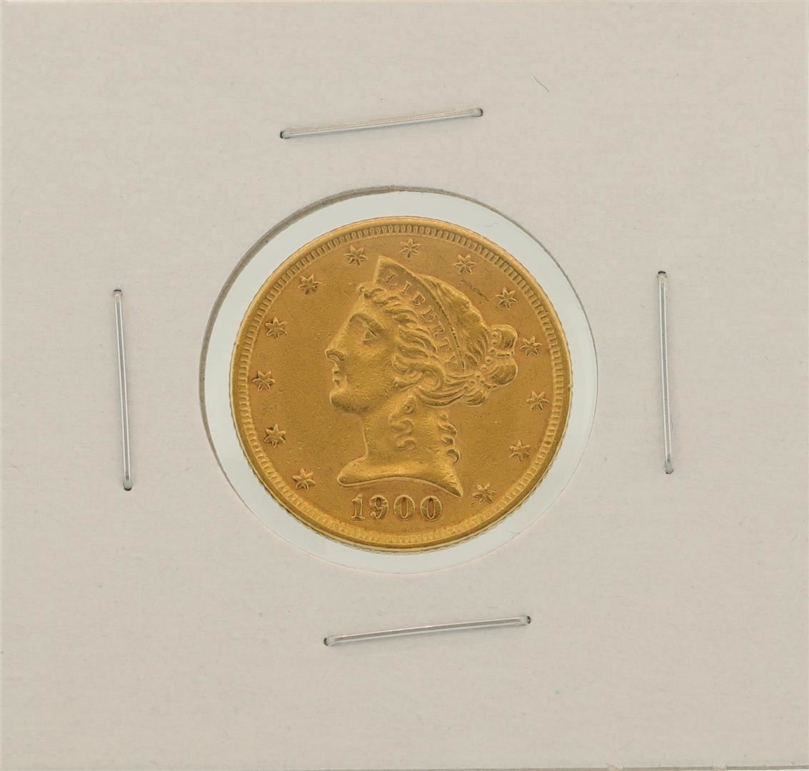 One 1900 $5 Liberty Head Half Eagle Gold Coin .