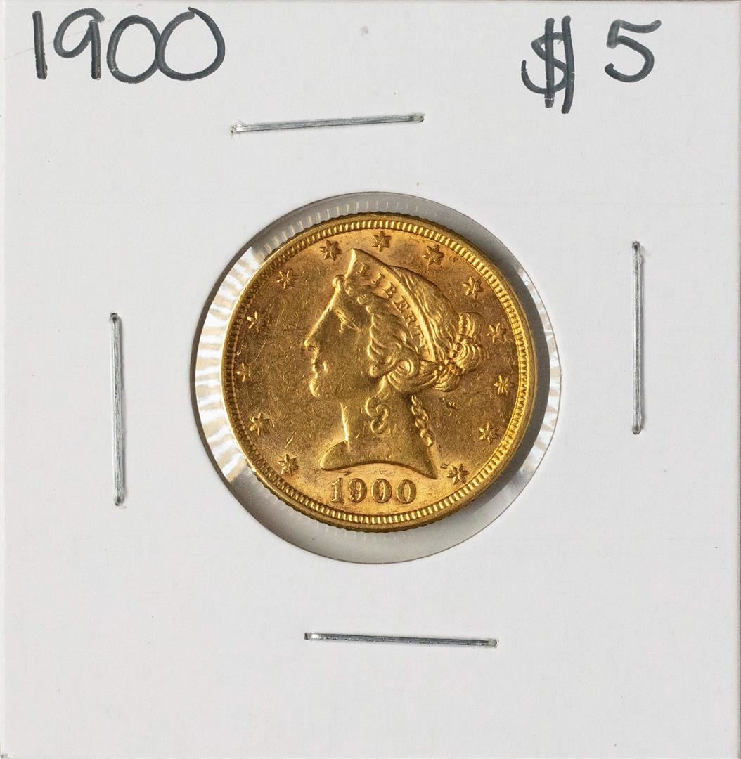 One 1900 $5 Liberty Head Half Eagle Gold Coin.