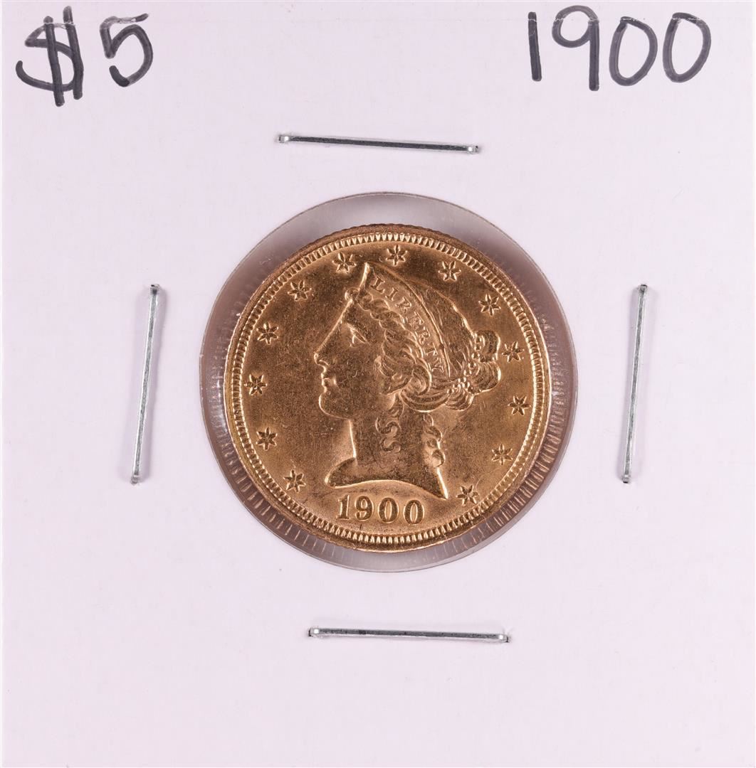 One 1900 $5 Liberty Head Half Eagle Gold Coin.