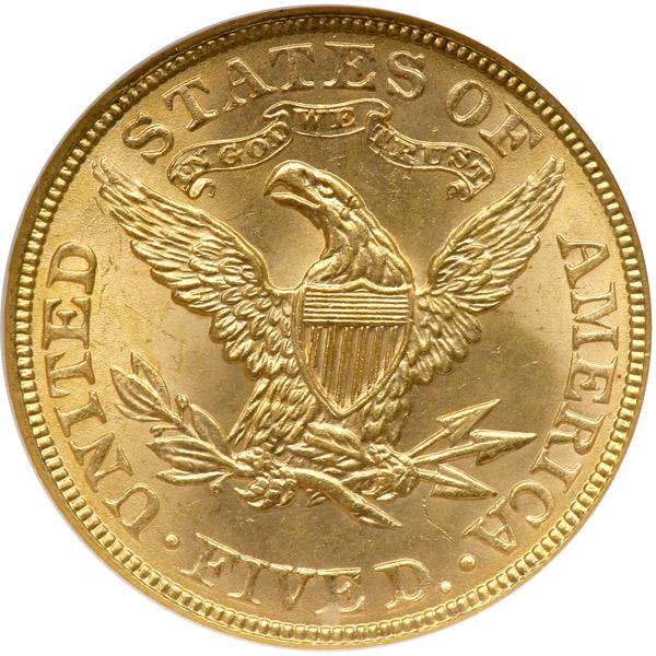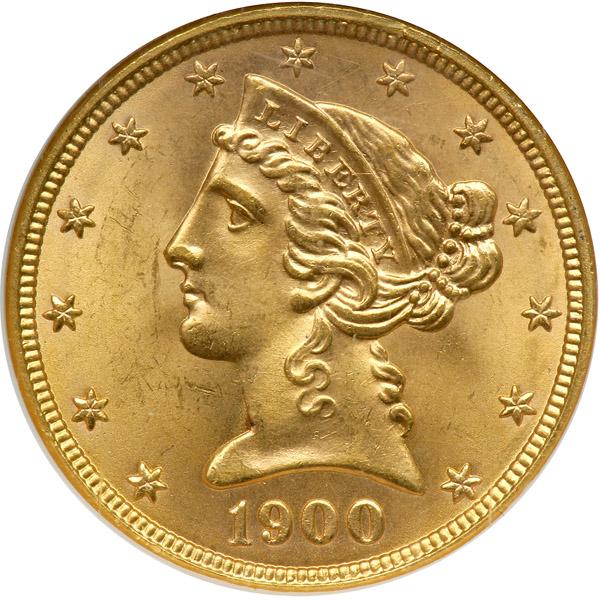 1900 $5 Liberty. NGC graded MS-66. A sparkling untoned gem. A bright coin radiating mint glow on golden surfaces with nothing to censor it from its bold grade. Our consignor left us several superior Gem Mint State Liberty half eagles, each and every one a hand-picked specimen. Those who get the opportunity to examine them all before they sell will see just how consistently blemish-free and original they are -- proof of his perceptive eye and inflexible perseverance in acquiring top quality. Pop 29; 5 finer (PCGS # 8400) .