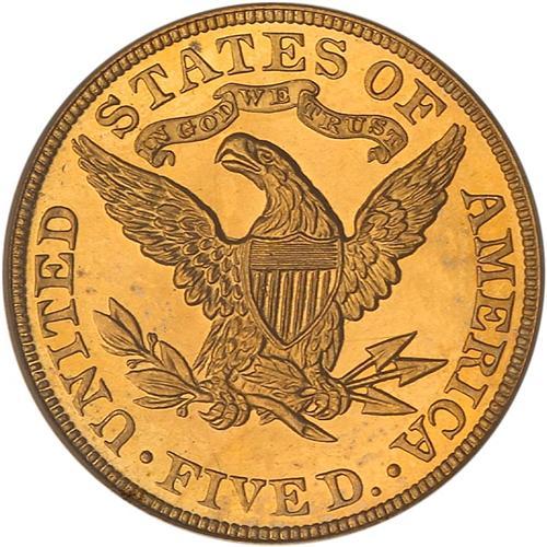 From a proof mintage of 136 coins for this date. A fully struck superb gem proof. Lemon gold with great eye appeal. Possibly undergraded by at least a point and in an older green PCGS holder. Estimated at $25,000 to $35,000.