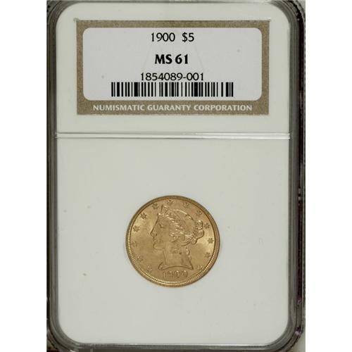 1900 $5 MS61 NGC. NGC Census: (1898/7409). PCGS Po