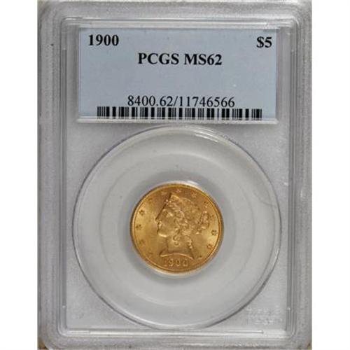 <B>1900 $5 MS62 PCGS.</B></I> PCGS Population (2326/2274). NGC Census: (3876/3702). Mintage: 1,405,730. Numismedia Wsl. Price for NGC/PCGS coin in MS62: $285. (#8400)<BR><BR><B>Coin Engraver:</B> Christian Gobrecht<BR><BR><b>Shipping:</b> Coins & Currency (<a target="_blank" href="http://www.heritageauctions.com/common/shipping.php">view shipping information</a>)