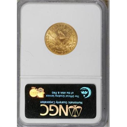 <B>1900 $5 MS63 NGC.</B></I> NGC Census: (2332/1383). PCGS Population (1675/617). Mintage: 1,405,730. Numismedia Wsl. Price for NGC/PCGS coin in MS63: $665. (#8400)<BR><BR><B>Coin Engraver:</B> Christian Gobrecht<BR><BR><b>Shipping:</b> Coins & Currency (<a target="_blank" href="http://www.heritageauctions.com/common/shipping.php">view shipping information</a>)