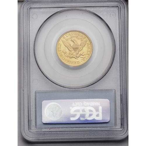 <B>1900<$5> MS63 PCGS.</B></I> Boldly struck, bright, and satiny, with pleasing coloration and a handful of minuscule surface marks. A high-end example for the grade.