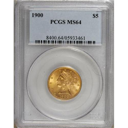 <B>1900 $5 MS64 PCGS.</B></I> This carefully preserved and sharply impressed near-Gem displays vibrant luster. The eye appeal is undeniable. A short set of Liberty half eagles, 1898 to 1908, can be completed in Choice Mint State with only one difficult date, the 1904-S.<BR><BR><b>Shipping:</b> Coins & Currency (<a target="_blank" href="http://www.heritageauctions.com/common/shipping.php">view shipping information</a>)