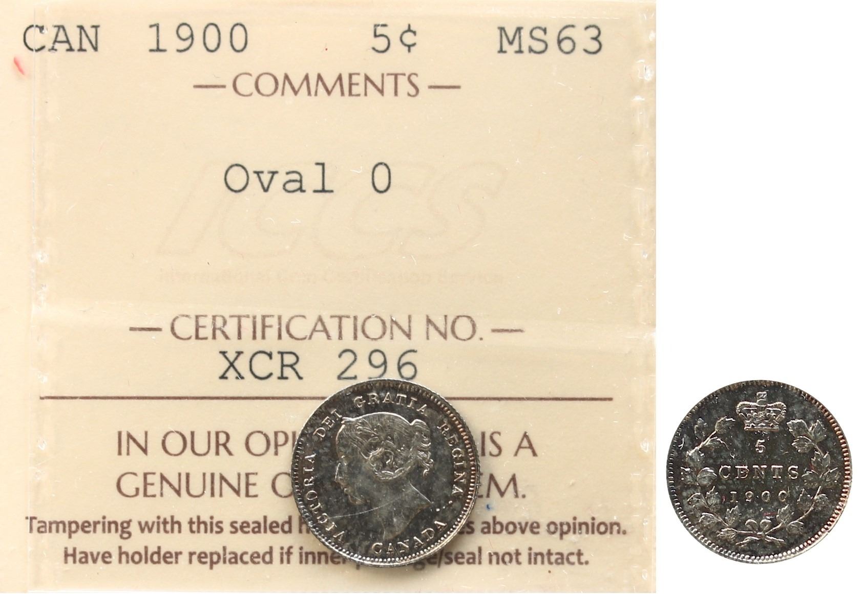 1900 5¢ "Oval 0" ICCS Choice Mint State-63