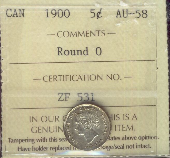 1900 5¢ Rd O ICCS AU58.