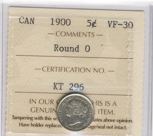 1900 5¢ Round 0. A nice piece in ICCS VF30.