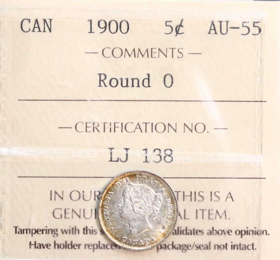 1900 5¢ Round 0 ICCS Choice About Uncirculated-55.
