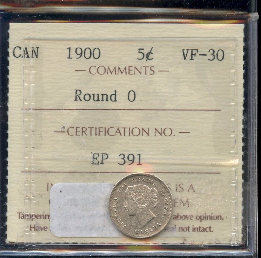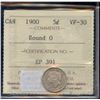 1900 5¢ Round 0, ICCS VF-30.