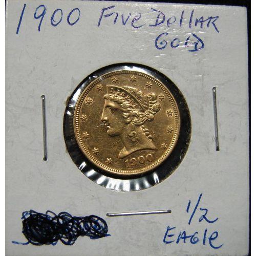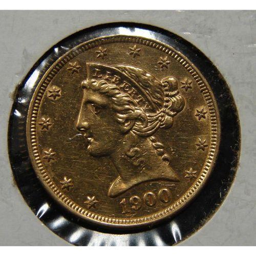 1900 $5 U.S. LIBERTY GOLD COIN.