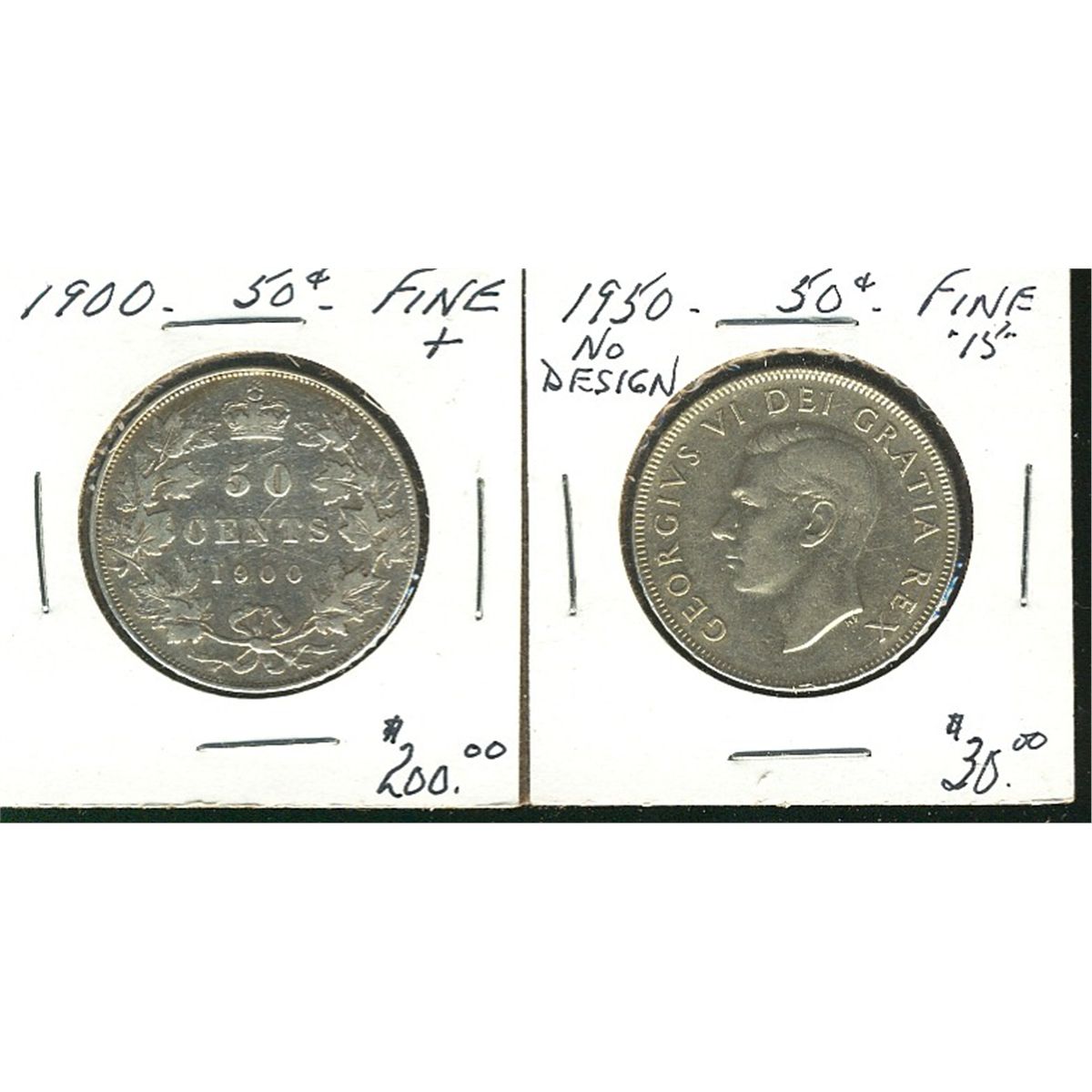 1900 50¢ & 1950 No Des Fine+. Lot of 2 coins. (PBA).