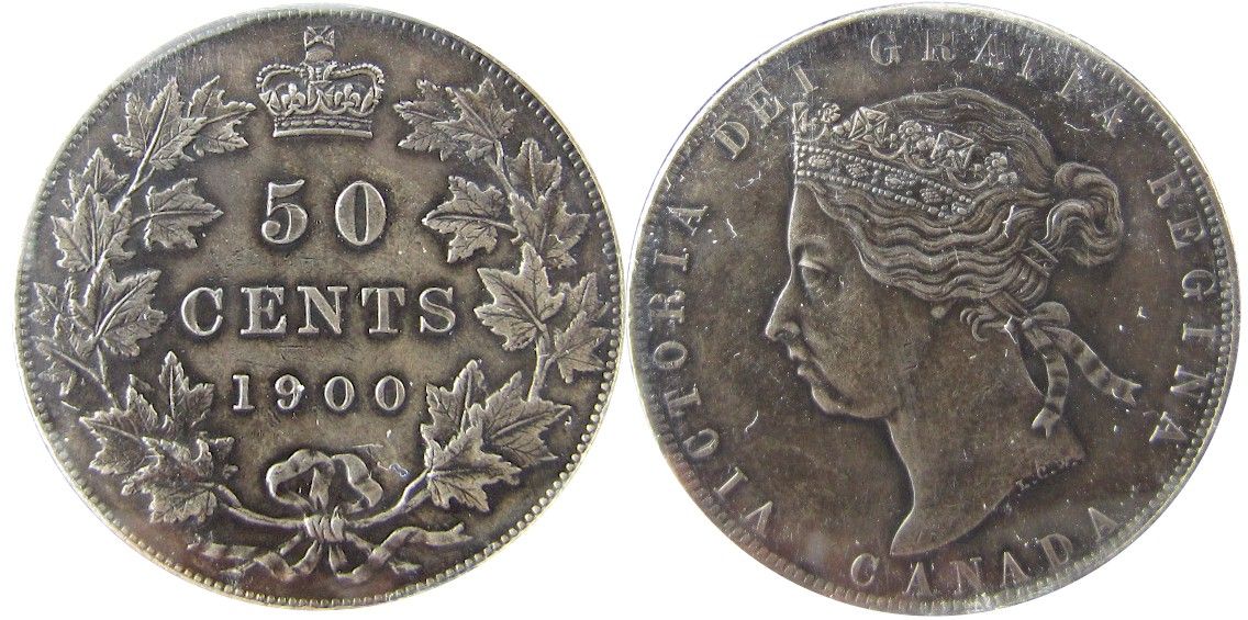 1900 50¢ ICCS AU55. Intense shades with lots of underlying lustre. Scarce this nice.