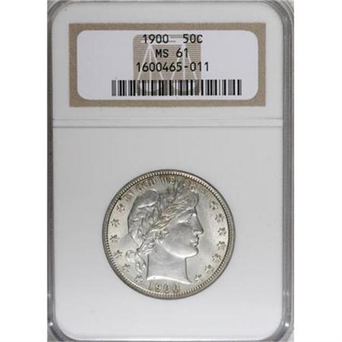 <B>1900 50C MS61 NGC.</B></I> An unworn and shining example of this turn-of-the-century Philadelphia issue. Well-defined overall with scattered flaws in the fields and a single moderate abrasion on Liberty's cheek.<BR><BR><B>Coin Engraver:</B> Charles E. Barber<BR><BR><b>Shipping:</b> Coins & Currency (<a target="_blank" href="http://www.heritageauctions.com/common/shipping.php">view shipping information</a>)