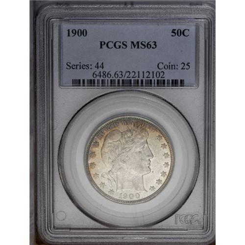 1900 50C MS63 PCGS. Whispers of gold-brown, lavender, 1900[50C] MS63 PCGS.