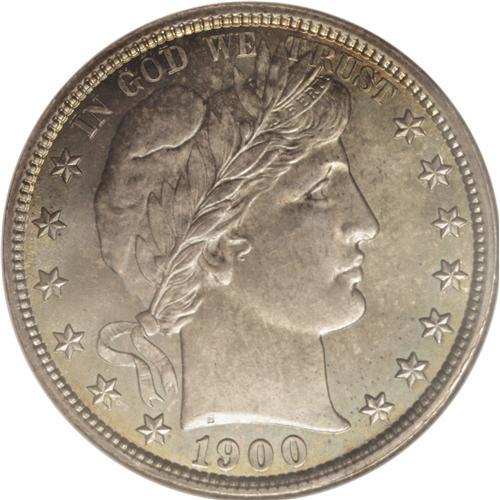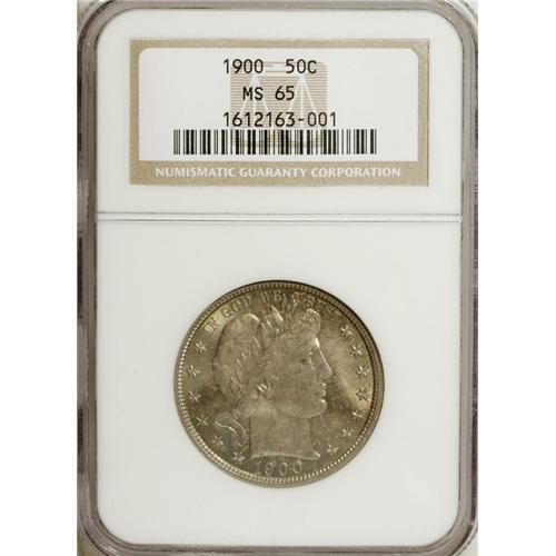 1900 50C MS65 NGC. This high-mintage Barber half (4,76