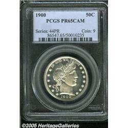 <B>1900 50C PR65 Cameo PCGS.</B></I> A spectacular turn-of-the-century proof that is completely brilliant and has appreciable contrast between the glassy fields and the chalk-white devices. There are no notable marks on either side, one tiny black spot shows at the center of the obverse. Population: 8 in 65, 10 finer (1/05).<BR><I>From The Richard J. Chouinard Collection of United States Coins, Part Three.</B></I>