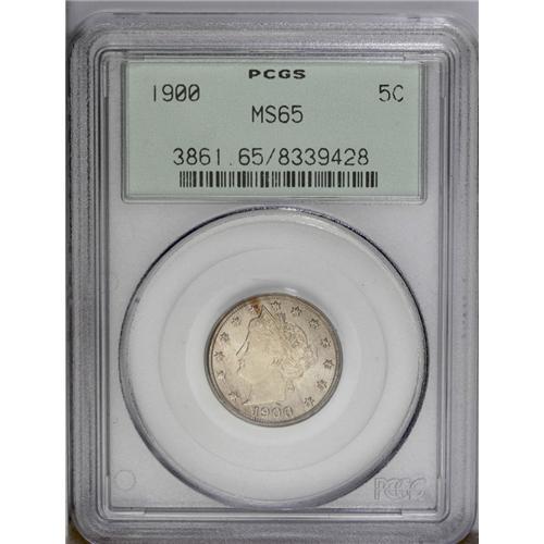 1900 5C MS65 PCGS. Fully struck, the softly frosted su