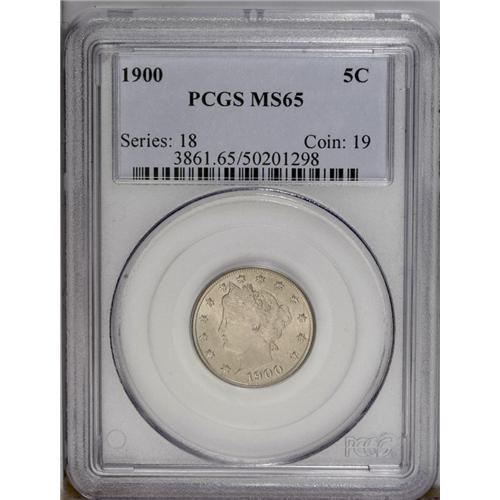1900 5C MS65 PCGS. This bright, lightly toned, well st