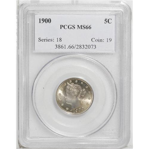 <B>1900<5C> MS66 PCGS.</B></I> A pristine turn-of-the-century Liberty nickel that displays shimmering, satiny luster and excellent sharpness. The surfaces are lightly toned with apricot-gold color. Population: 34 in 66, 5 finer (8/06).<BR><I>From The Della Collection.</B></I>