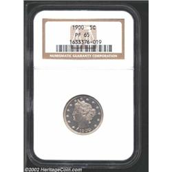 1900 5C PR65 NGC. A silver-gray specimen, the uniformly reflective surfaces shimmer as the coin turn