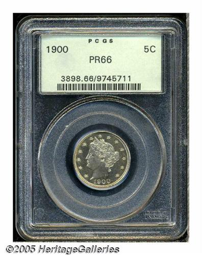 <B>1900<5C> PR66 PCGS.</B></I> A needle-sharp specimen that has light chestnut and lilac color. A gorgeous premium Gem with imposing original eye appeal. Housed in a prior generation holder. Population: 59 in 66, 14 finer (5/05).