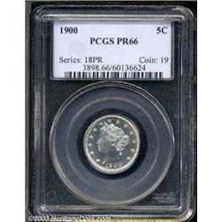 <TABLE cellSpacing=0 cellPadding=0 width="100%" bgColor=#000000 border=0><TBODY><TR><TD width="100%"><TABLE cellSpacing=1 cellPadding=3 width="100%" border=0><TBODY><TR><TD width="100%" bgColor=#79735c><FONT face=arial color=#ffffff size=3><B>Description</B> </FONT></TD></TR><TR><TD width="100%" bgColor=#ffffff><FONT face=arial size=2><B>1900 5C PR66 PCGS.</B></I> This lightly toned example evidences modestly reflective fields and richly defined devices that could only be the result of careful production methods. Exquisitely preserved, and free of handling errors or evidence of coin-to-coin contact. Population: 59 in 66, 15 finer (8/03). </FONT></TD></TR></TBODY></TABLE></TD></TR></TBODY></TABLE><BR><A name=PricesRealized></A><TABLE cellSpacing=0 cellPadding=0 width="100%" bgColor=#000000 border=0><TBODY><TR><TD width="100%"><TABLE cellSpacing=1 cellPadding=3 width="100%" border=0><TBODY><TR><TD width="100%" bgColor=#79735c><A name=PR><FONT face=arial color=#ffffff size=3><B>Previous Prices from Heritage Auctions</B> </FONT></A></TD></TR><TR><TD bgColor=#f6f6ed><TABLE cellSpacing=0 cellPadding=0 width="100%" border=1><TBODY><TR><TD align=middle width="33%"><B>Date</B></TD><TD align=middle width="33%"><B>Service</B></TD><TD align=middle width="33%"><B>Price</B></TD></TR><TR bgColor=whitesmoke><TD width="33%"><B>01/11/2003</B></TD><TD width="33%">PCGS</TD><TD width="33%">$776.25</TD></TR><TR bgColor=whitesmoke><TD width="33%"><B>01/05/1994</B></TD><TD width="33%">PCGS</TD><TD width="33%">$660.00</TD></TR><TR bgColor=whitesmoke><TD width="33%"><B>09/24/2002</B></TD><TD width="33%">NGC</TD><TD width="33%">$603.75</TD></TR><TR bgColor=whitesmoke><TD width="33%"><B>02/23/2002</B></TD><TD width="33%">NGC</TD><TD width="33%">$494.50</TD></TR><TR bgColor=whitesmoke><TD width="33%"><B>08/13/1996</B></TD><TD width="33%">NGC</TD><TD width="33%">$770.00</TD></TR><TR bgColor=whitesmoke><TD width="33%"><B>02/01/2000</B></TD><TD width="33%">PCGS</TD><TD width="33%">$776.00</TD></TR><TR bgColor=whitesmoke><TD width="33%"><B>05/01/1999</B></TD><TD width="33%">PCGS</TD><TD width="33%">$633.00</TD></TR><TR bgColor=whitesmoke><TD width="33%"><B>01/01/1996</B></TD><TD width="33%">NGC</TD><TD width="33%">$638.00</TD></TR></TBODY></TABLE></TD></TR><TR><TD bgColor=#ffffff><FONT face=arial size=1 ?>PLEASE NOTE: All prices realized reflect the final hammer price PLUS the buyer's premium in auctions that charge a buyer's premium. Each item has a notation at the top of the listing indicating whether that lot included a buyer's premium. Example: A item that sells with a final hammer price of $100 and a 20% buyer's premium will display with a price realized of $120. All information listed is intended to be as accurate as possible, but errors are possible. Please use this guide carefully and inform us of any inaccuracies. </FONT></TD></TR></TBODY></TABLE></TD></TR></TBODY></TABLE><BR><TABLE cellSpacing=0 cellPadding=0 width="100%" bgColor=#000000 border=0><TBODY><TR><TD width="100%"><TABLE cellSpacing=1 cellPadding=3 width="100%" border=0><TBODY><TR><TD width="100%" bgColor=#79735c colSpan=6><FONT face=arial color=#ffffff size=3><B>Price Guide*</B> </FONT></TD></TR><TR bgColor=#f6f6ed><TD align=middle><B>Grade</B> </TD><TD align=middle><B>Coin World<BR>(Trends)</B> </TD><TD align=middle><B>Numismedia<BR>Retail</B> </TD><TD align=middle><B>Numismedia<BR>Wholesale</B> </TD><TD align=middle><B>Coin<BR>Universe</B> </TD><TD align=middle><B>Heritage<BR>Value Index</B> </TD></TR><TR bgColor=#ffffff><TD align=middle>65</TD><TD align=right>---</TD><TD align=right>$600.00</TD><TD align=right>$480.00</TD><TD align=right>$600.00</TD><TD align=right>$351.92</TD></TR><TR style="FONT-WEIGHT: bold" bgColor=#cccfdd><TD align=middle>66</TD><TD align=right>---</TD><TD align=right>$880.00</TD><TD align=right>$675.00</TD><TD align=right>$825.00</TD><TD align=right>$551.25</TD></TR><TR bgColor=#ffffff><TD align=middle>67</TD><TD align=right>---</TD><TD align=right>---</TD><TD align=right>$1,425.00</TD><TD align=right>$2,400.00</TD><TD align=right>$1,690.00</TD></TR><TR bgColor=#ffffff><TD colSpan=6><FONT size=1>*All information listed is intended to be as accurate as possible, but errors are possible. No item may be returned or refused based on this information which is provided as a service to our customers. You should contact each pricing source directly to determine the accuracy of this information. </FONT></TD></TR></TBODY></TABLE></TD></TR></TBODY></TABLE><BR><TABLE cellSpacing=0 cellPadding=0 width="100%" bgColor=#000000 border=0><TBODY><TR><TD width="100%"><TABLE cellSpacing=1 cellPadding=3 width="100%" border=0><TBODY><TR><TD width="100%" bgColor=#79735c><FONT face=arial color=#ffffff size=3><B>Population Guide</B> </FONT></TD></TR><TR bgColor=#ffffff><TD align=middle><!-- Begin Output of Population Grid--><TABLE cellSpacing=0 cellPadding=0 width="100%" border=0><TBODY><TR><TD vAlign=center><TABLE cellSpacing=0 width="100%" border=1 cellsadding="3"><TBODY><TR><TD vAlign=center><TABLE cellSpacing=0 cellPadding=3 width="100%" border=1><TBODY><TR><TD vAlign=center align=middle bgColor=#f0f1e8 colSpan=2 <CENTER><FONT face=Arial size=2><B>PCGS Pop </B></FONT><CENTER></CENTER></TD><TD vAlign=center align=middle bgColor=#f0f1e8 colSpan=2><CENTER><FONT face=Arial size=2><B>NGC Pop</B></CENTER></FONT></TD></TR><TR><TD vAlign=center><FONT face=Arial size=2>(66)</FONT> </TD><TD vAlign=center align=right><FONT face=Arial size=2>59</FONT> </TD><TD vAlign=center><FONT face=Arial size=2>(66)</FONT> </TD><TD vAlign=center align=right><FONT face=Arial size=2>60</FONT> </TD></TR><TR><TD vAlign=center><FONT face=Arial size=2>(>66)</FONT> </TD><TD vAlign=center align=right><FONT face=Arial size=2>15</FONT> </TD><TD vAlign=center><FONT face=Arial size=2>(>66)</FONT> </TD><TD vAlign=center align=right><FONT face=Arial size=2>24</FONT> </TD></TR></TBODY></TABLE></TD></TR></TBODY></TABLE></TD></TR></TBODY></TABLE><!-- End Output of Population Grid--> Impo